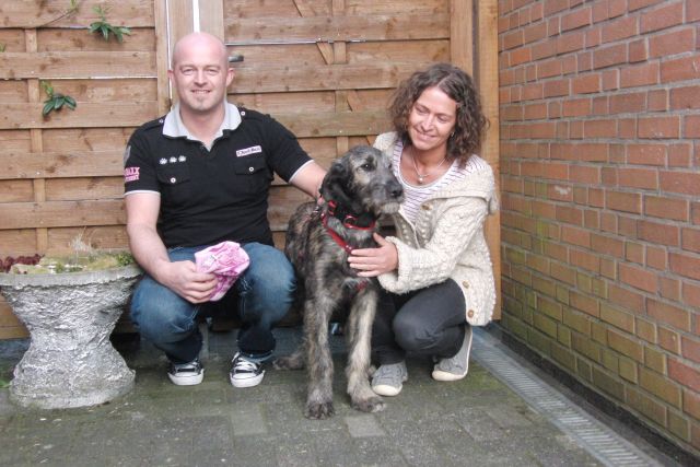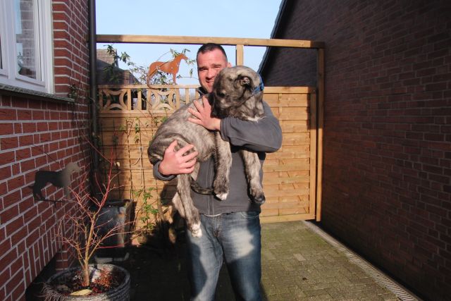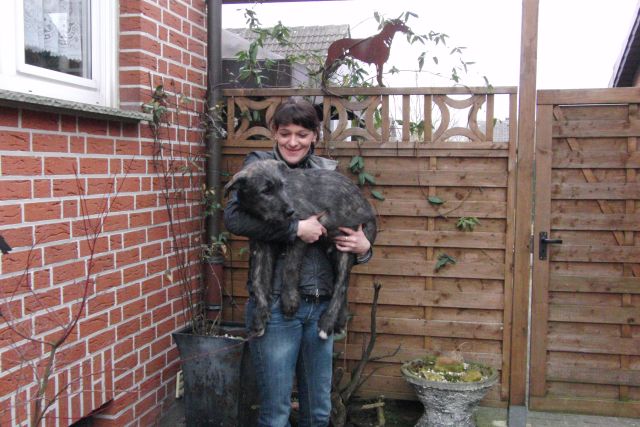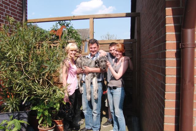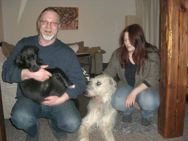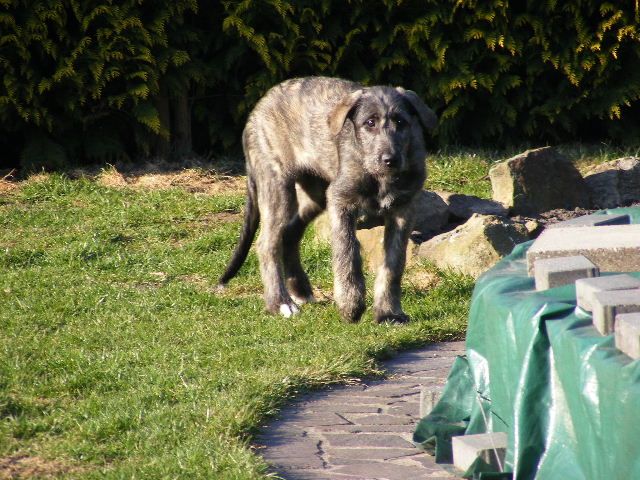und wird nun von den Wolfhoundrüden Duke und Diego erzogen...